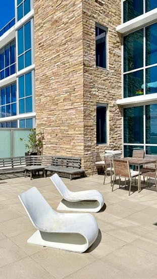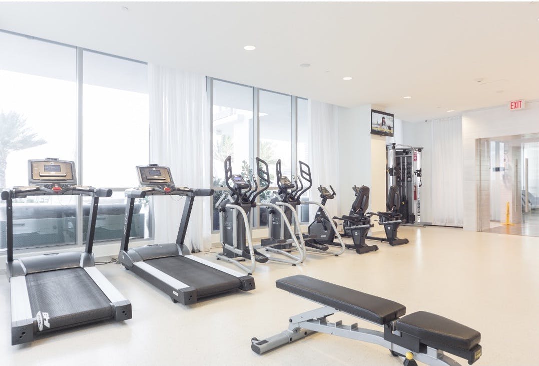 The wellness centre at the apartment complex features a fitness centre, pool table room as well as the outdoor hot tub.
